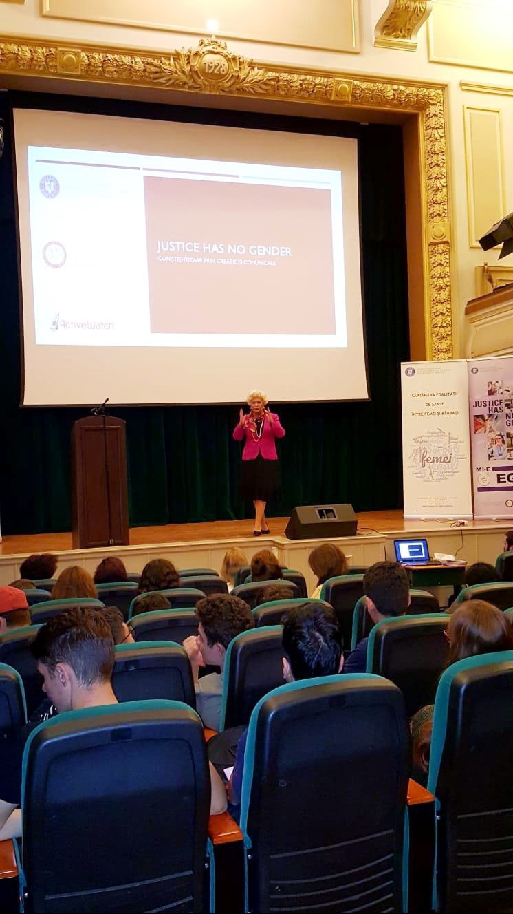 Astfel, la Colegiul Național Matei Basarab, instituție prestigioasă de educație și cultură cu tradiție de peste 150 de ani, pe data de 8 mai a.c. a avut loc evenimentul de lansare a unei resurse educaționale inovatoare, în contextul implementării proiectului ”Justice has no gender”, în parteneriat cu Autoritatea Națională pentru Persoane cu Dizabilități și Asociația Active Watch.